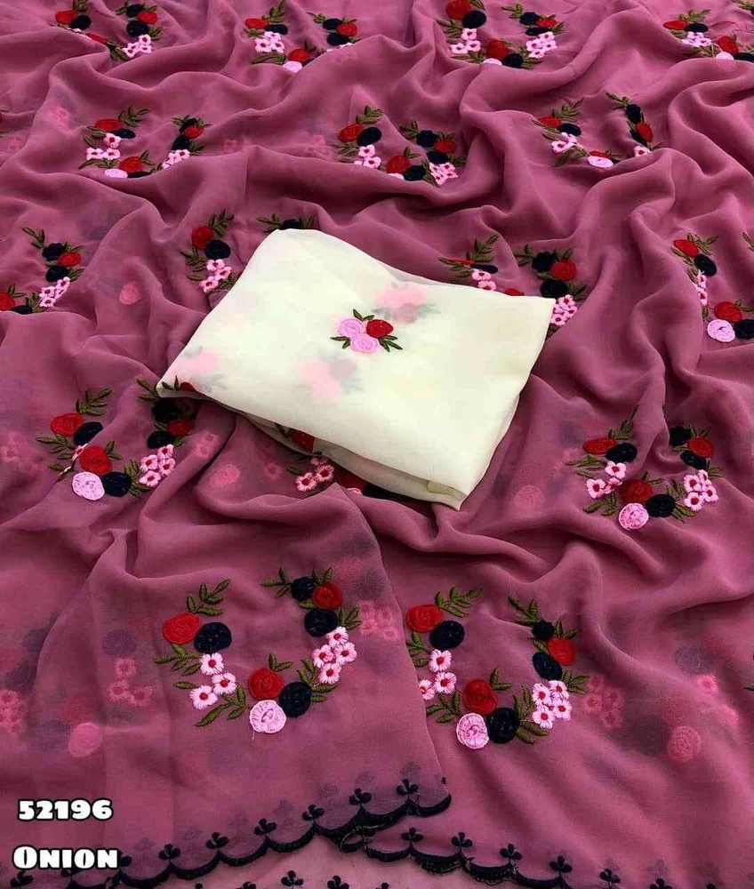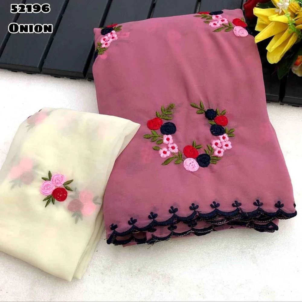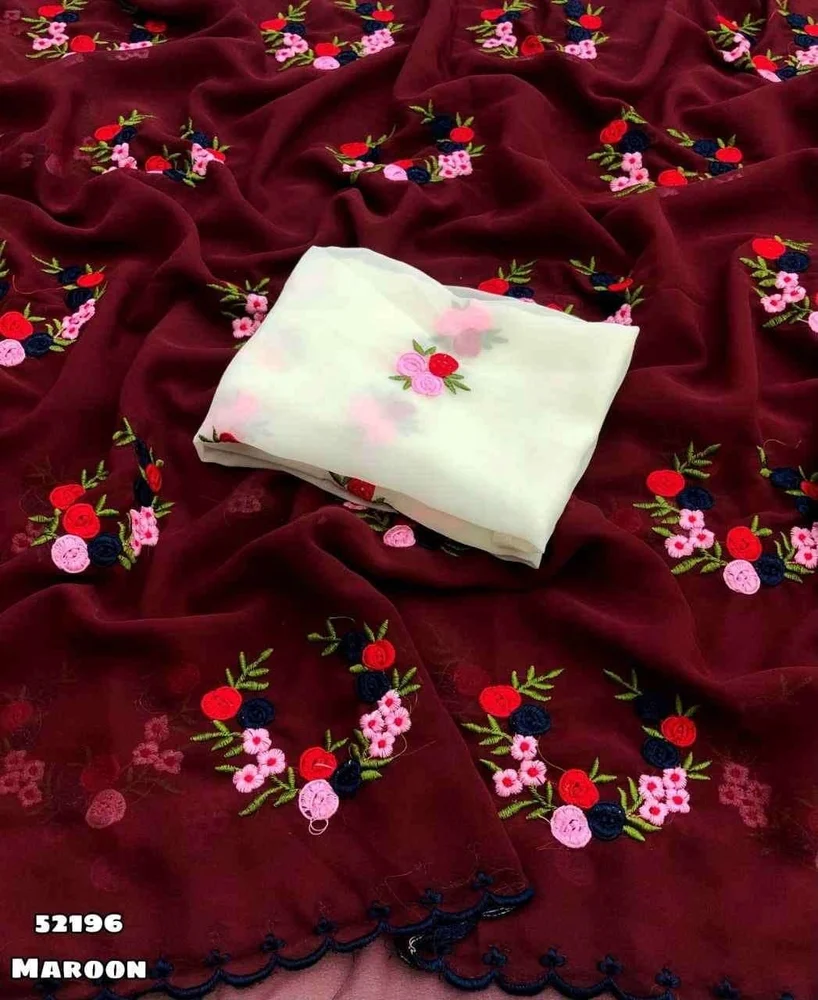Fabric – Launching new Georgette with embroidery work butta comes with scalloped border KR