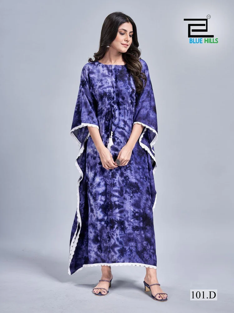 Long Tye dye Print Kaftan dress with lace border