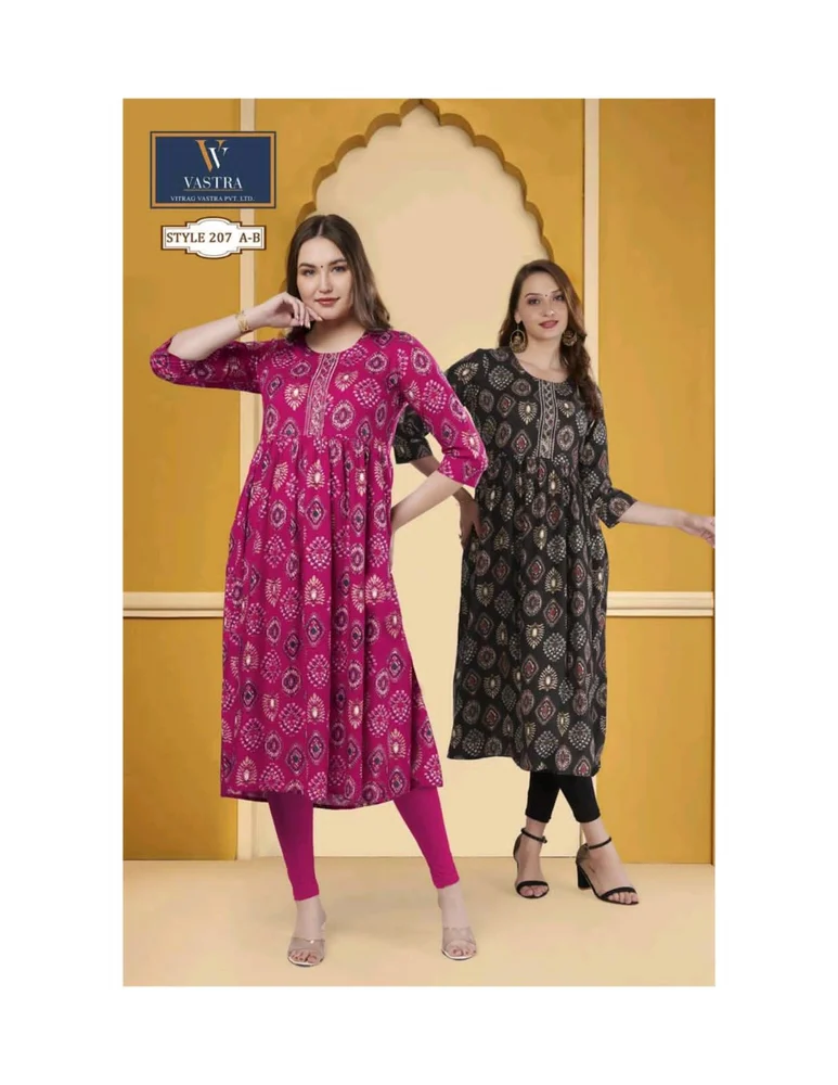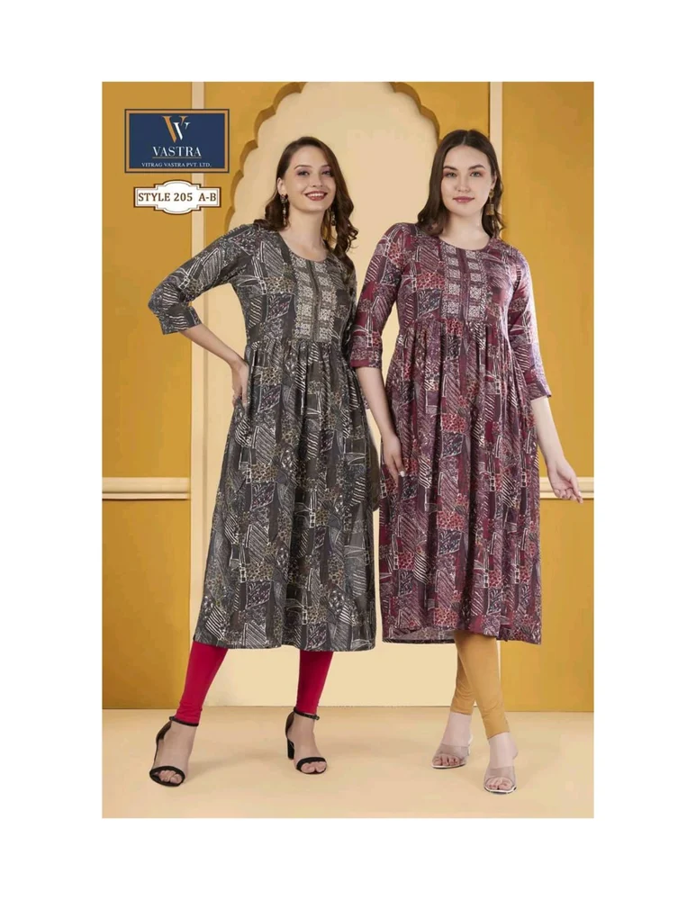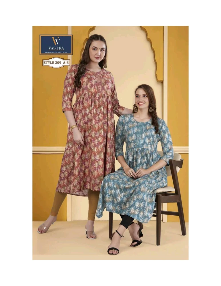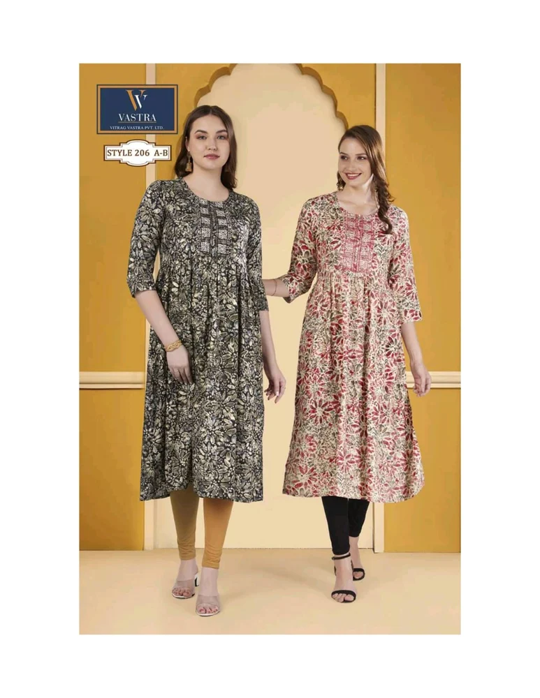 Size: M/38,L/40,XL/42, XXL/44 Fabric: 140 Gm Reyon Product: Top onlyWork: Nayra cut with Printed and workType: Fully stitched