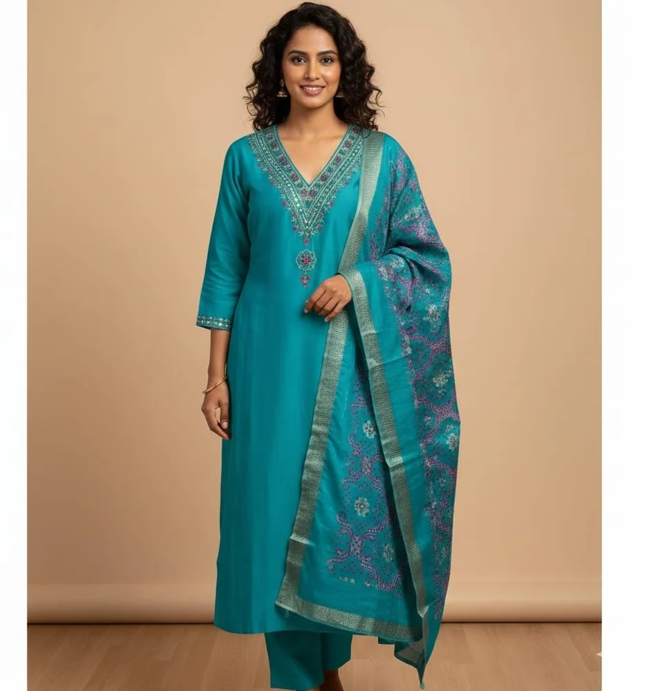 • Complete 3-piece outfit including Kurti, Pant & Dupatta