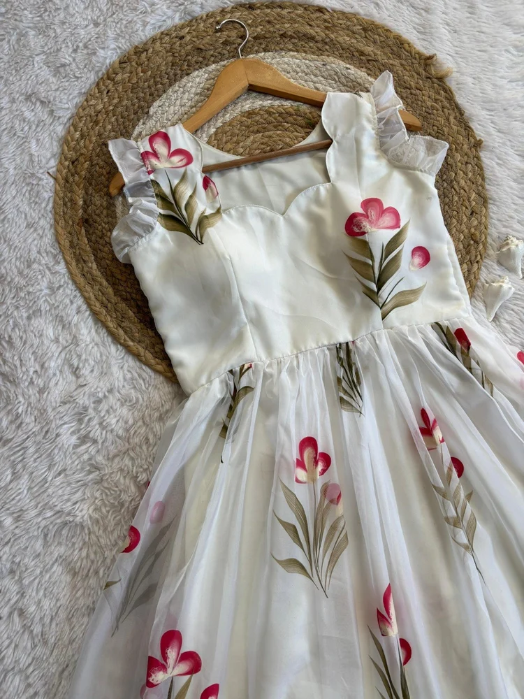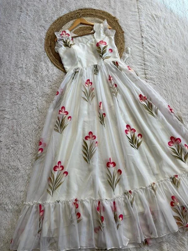 👗 MAXI GOWN👗Fabric :- Soft tabby Work :- Floral Print work Inner :- Micro CottonSize :- XS-S, M-L , XL-XXL Length :- 52 inch