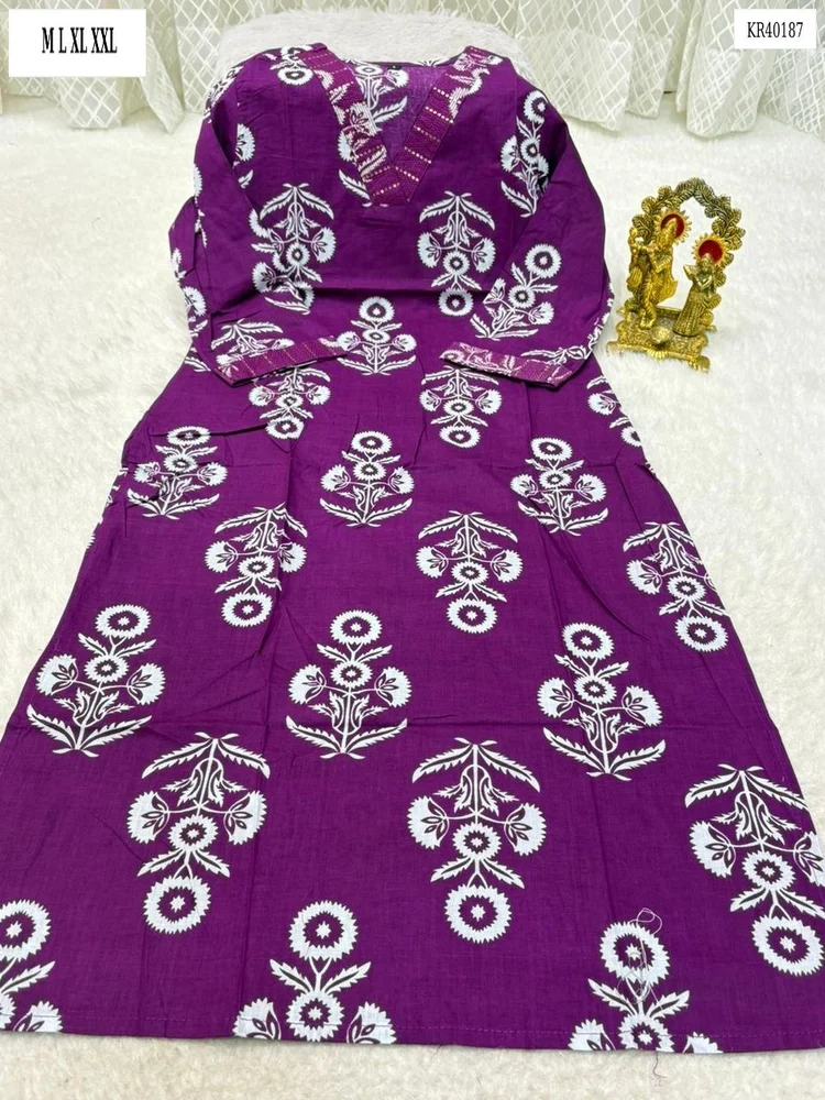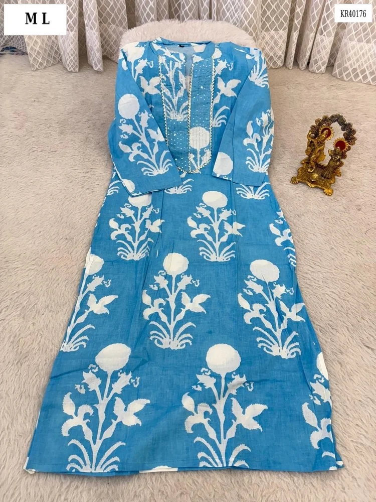 🌼 Cotton Jaipuri Embroidered Kurti 🌼