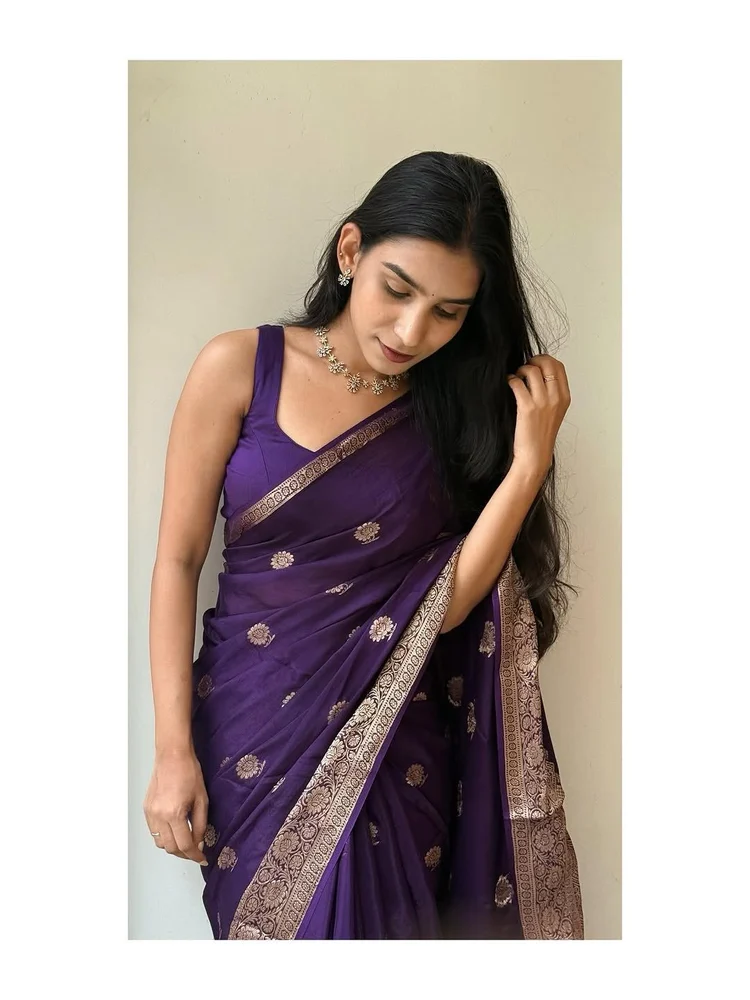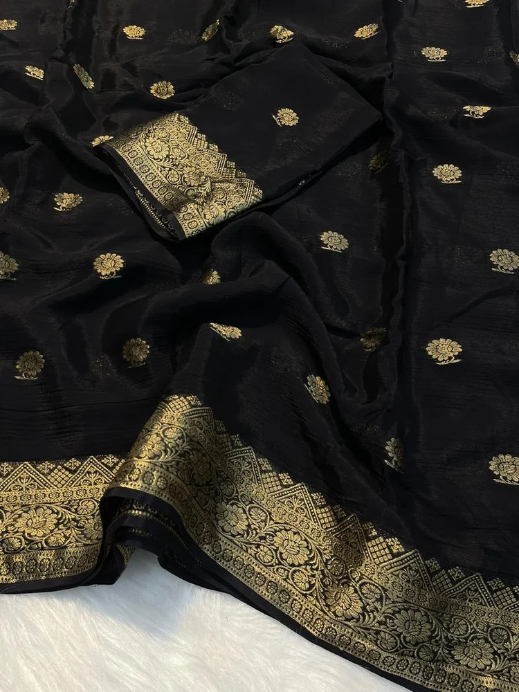Paired with a matching Viscose Crepe Silk Blouse, this saree offers both comfort and a rich premium look.