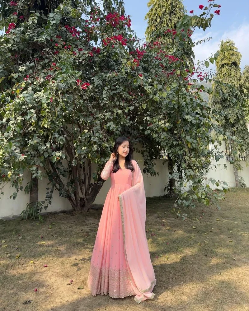 GOWN :HEAVY GEORGETTE WITH SEQUINS & ZARI EMBROIDERY WORK WITH 3 MTR FLAIR(FULLY STITCHED WITH CANVAS PATTA BORDER)