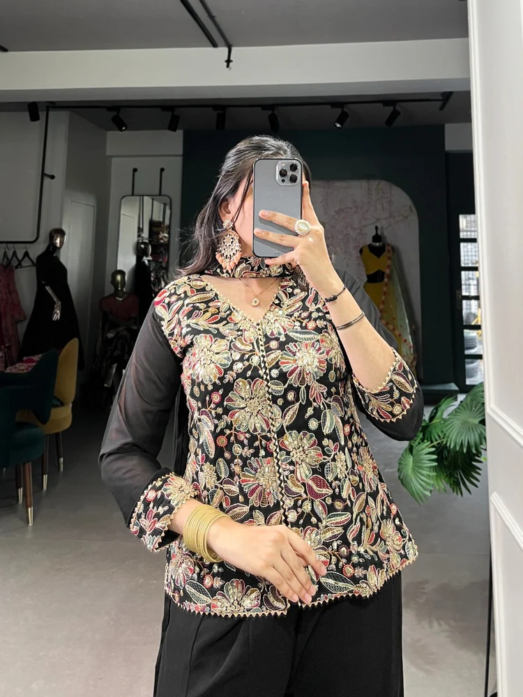 Step into effortless elegance with this stunning Black Georgette Western Wear Outfit, perfect for semi-formal occasions.