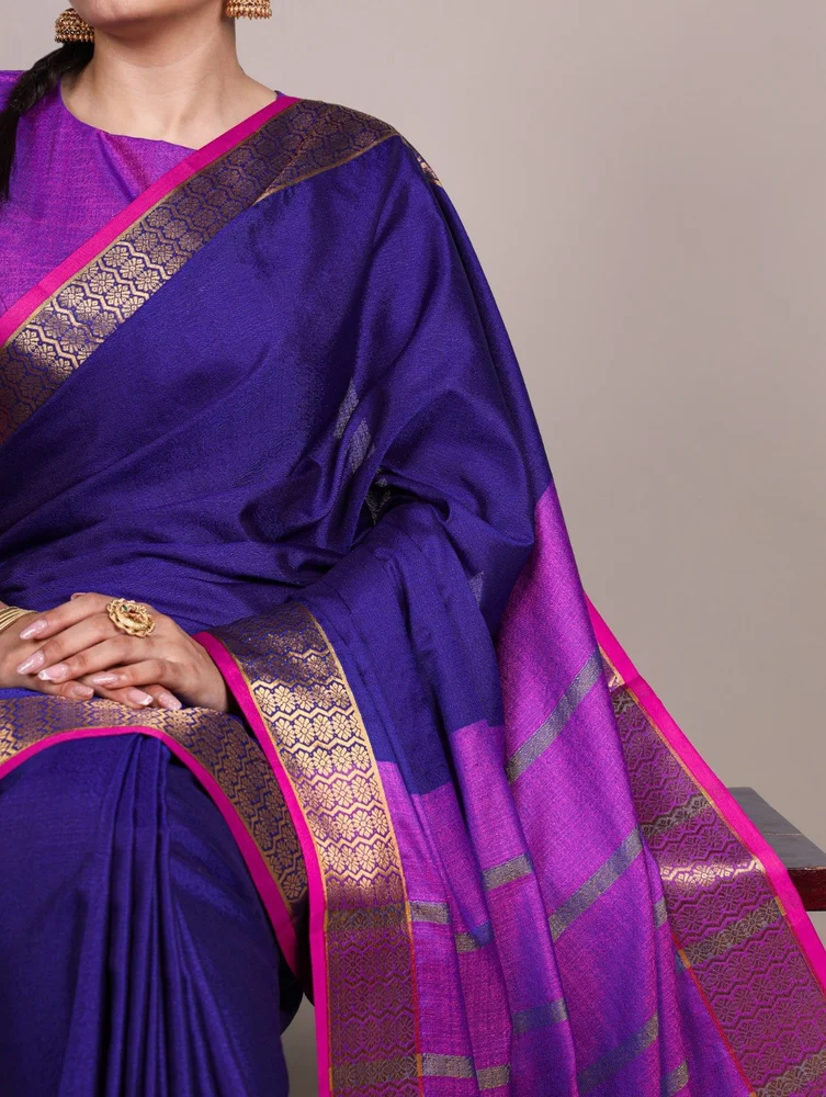 Blouse (Unstitched)Blouse Fabric : Poly Cotton Blouse Work : Zari Weaving Work Blouse Length : 0.80 Meter