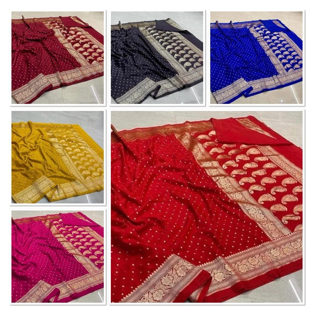 Comes with a matching unstitched silk blouse piece for custom stitching